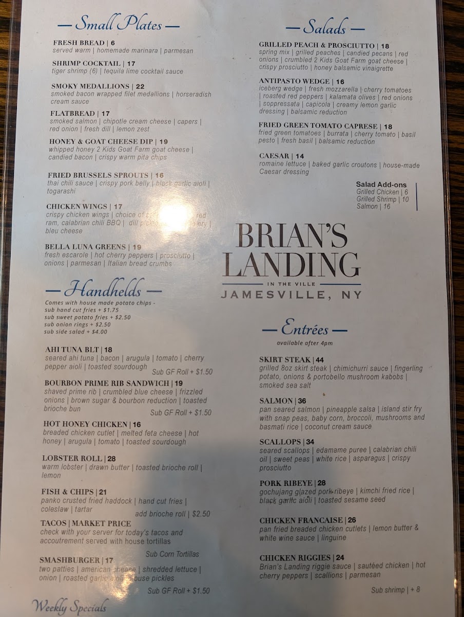 Overall, the menu at Brian's Landing Jamesville offers a perfect blend of flavors, textures, and culinary creativity. Whether you're in the mood for a light bite or a hearty entrée, paired with a refreshing cocktail, there's something for everyone to enjoy.
